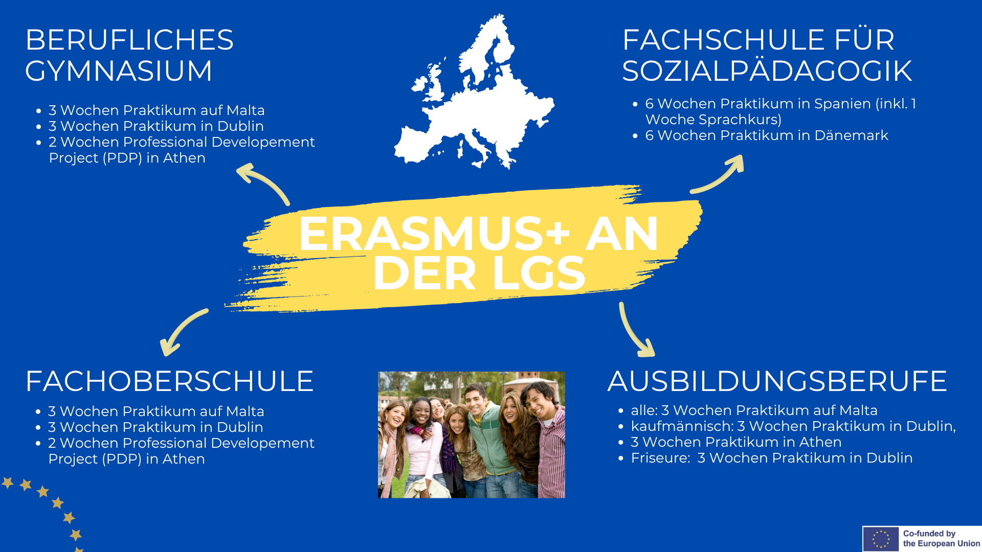 Unsere Schule bietet dir die Chance, im Rahmen des europĂ€ischen Förderprogramms Erasmus+ wertvolle Erfahrungen in einem Betrieb im Ausland zu sammeln. Ob in Spanien, Irland oder Finnland â du arbeitest, lernst und lebst fĂŒr mehrere Wochen in einem anderen Land und bekommst dafĂŒr eine finanzielle Förderung.