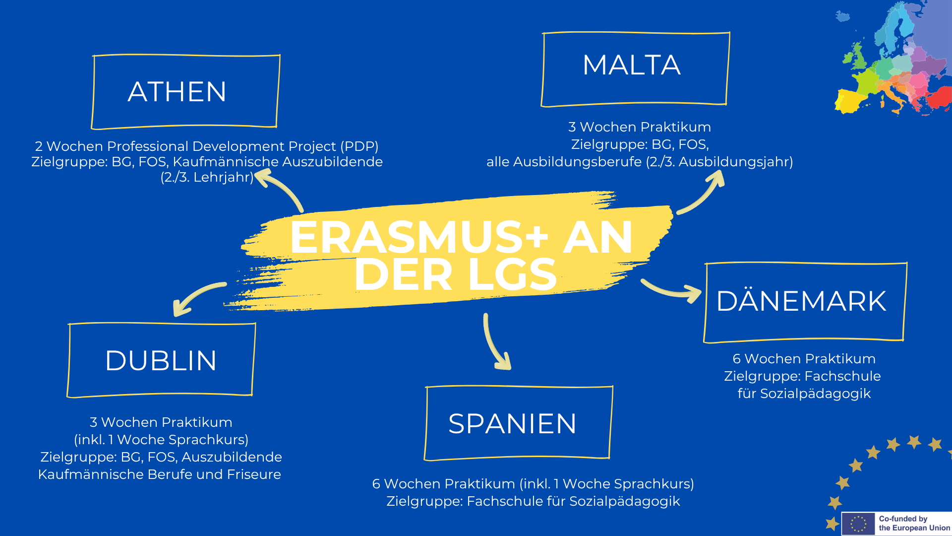 Our school offers you the opportunity to gain valuable work experience in another European country as part of the Erasmus+ mobility programme. Whether in Spain, Ireland, or Finland â youâll work, learn, and live abroad for several weeks, supported by an EU grant.